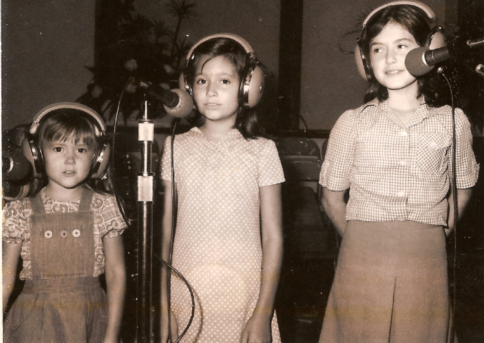 Recording a song with my sisters….  We sounded very similar to the Chipmunks!